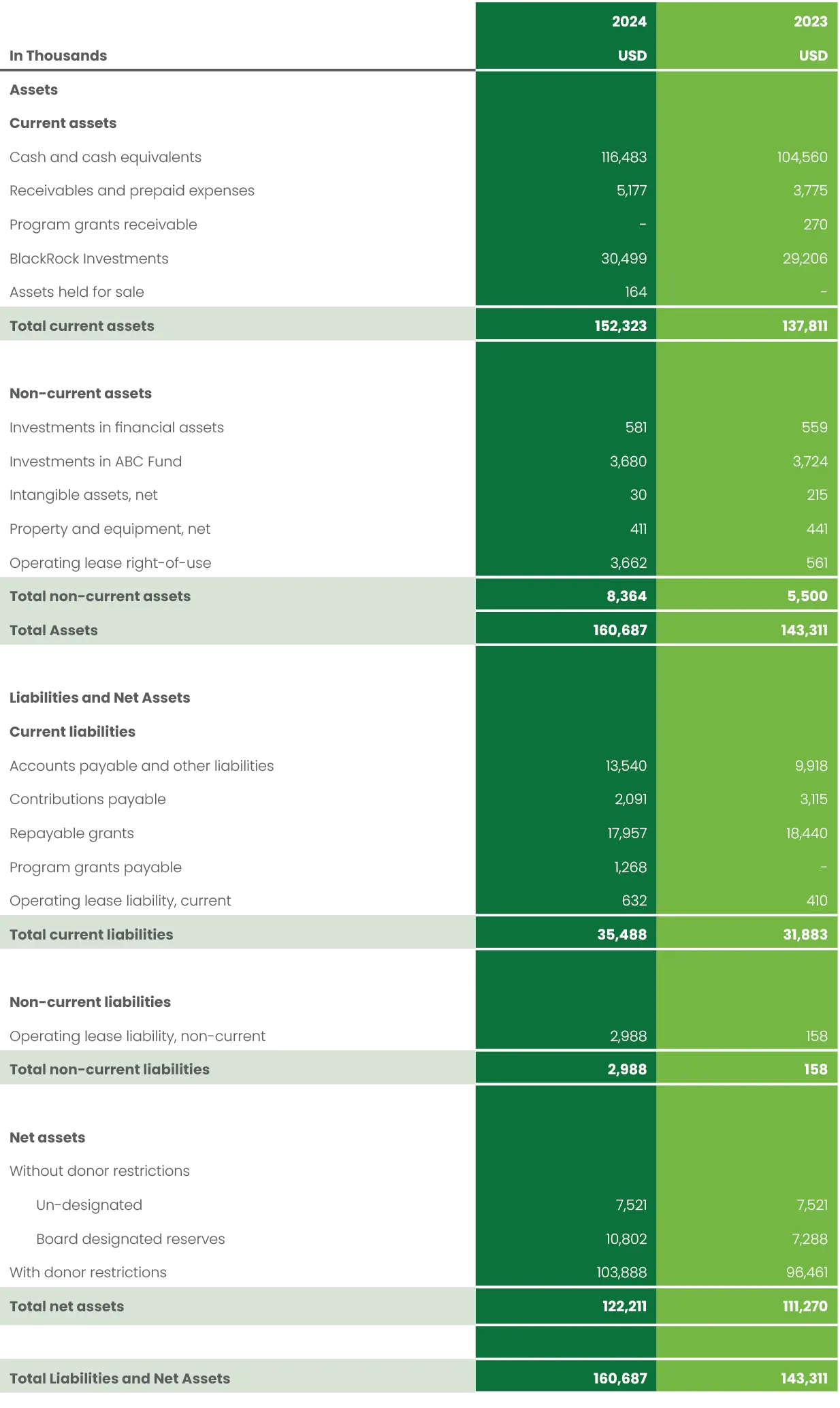 Financial position for the year ended December 31, 2024